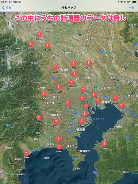 独り言はそこまでで,忘れてたんだけどうちではi地震という無料アプリを入れたiphoneを机に設置しているのだけど,その反応がこちら.