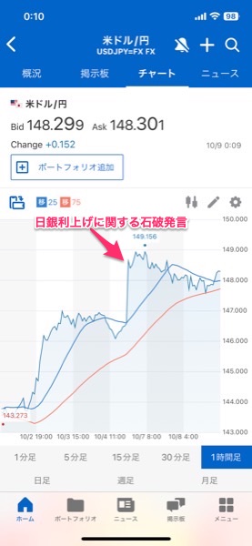 高市トレードの時に円安に急速に傾いていったけど,石破首相になって円高へ.石破発言でそうでもないなってことで円安に移動するという現在乱高下中.