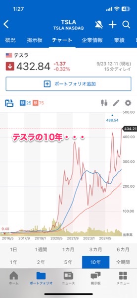ちょうど10年前に証券会社からテスラを勧められたので勝手に連想してパナソニックの株を購入したのだけど,ずっと株価は低迷.代わりにテスラはご存知の通り.