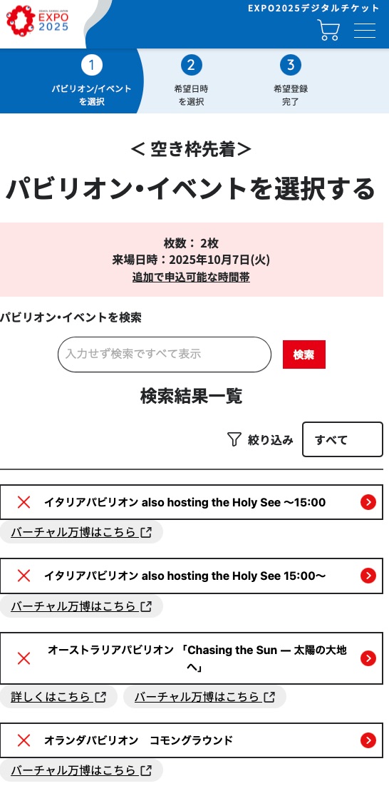 操作方法は、予約・抽選ガイド( https://www.expo2025.or.jp/tickets-index/reservation/ )をご確認ください。