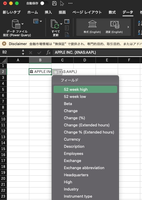 ブログ - Excelで株価データを取得 その2 Data Types機能を使ってみる
