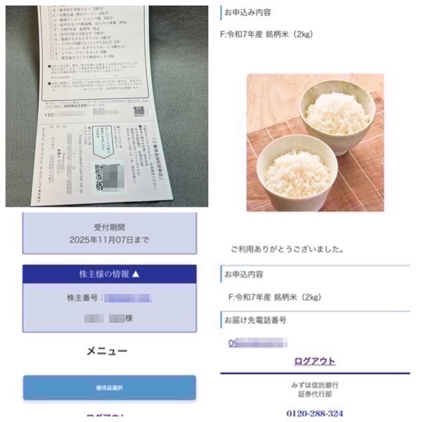 株主優待は去年より品揃えが多くなった模様.米を入れてたけど米不足で苦労したからかなぁ.
