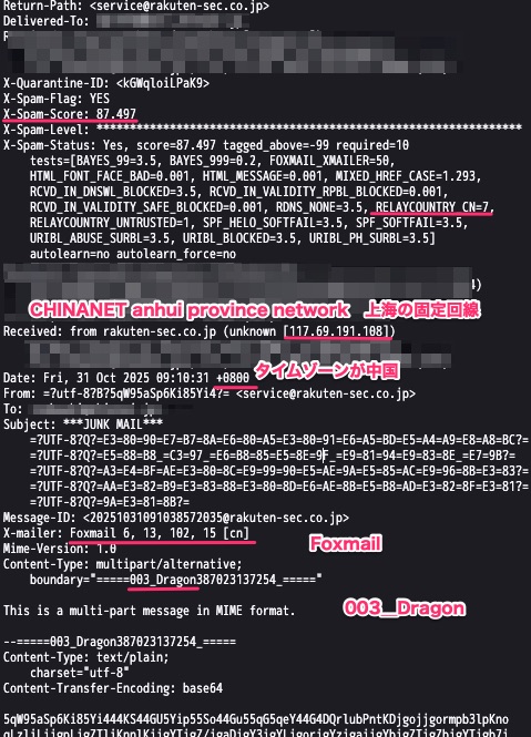 うちに来るメールで定番の003_Dragon,Foxmailの足跡が.