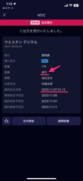 タイミングを測っていると乗り遅れてるのがわかったので,悔しいのでとりあえず1株,成り行きで買ってみた.