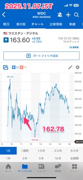 SP500やNASDAQが値下がりする中でプラスで終えたウエスタンデジタルだけど,まぁまぁ安いところで買えたのかもしれない.一応,プラスで終わったけど.