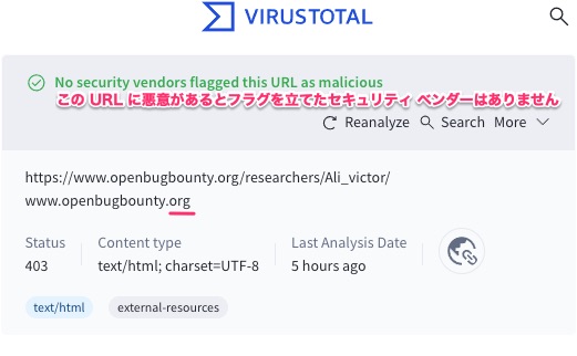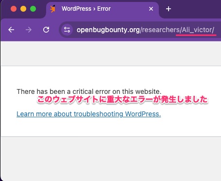 セキュリティ研究者のプロフィール : https[:]//www.openbugbounty.org/researchers/Ali_victor/