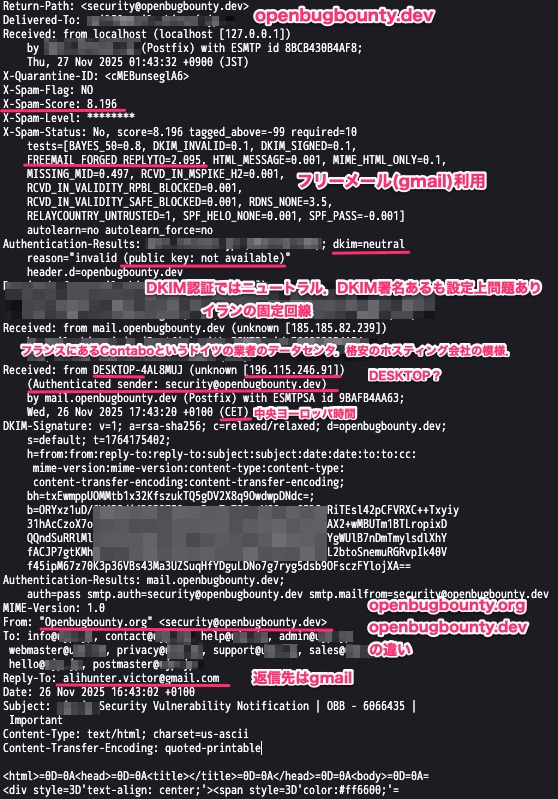 ブログ - Security Vulnerability Notification という件名でバグバウンティからの警告メールが詐欺だった