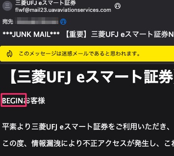 ここ数日,うちに到着している金融系を騙るフィッシングメール.本文にある宛名の中に有名・著名人の名前が差し込みで入っている.