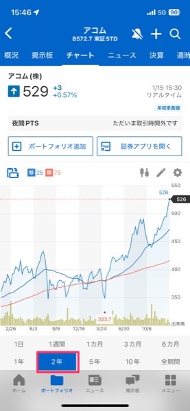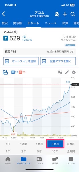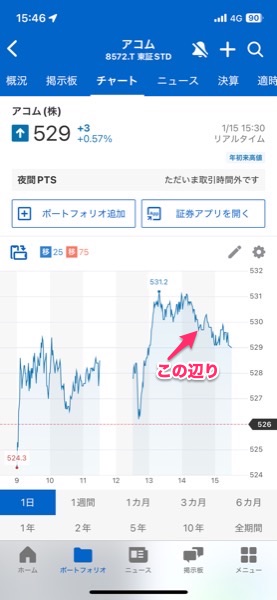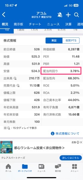 消費者金融の「アコム」の株を買ってみた.500株で265,000円.