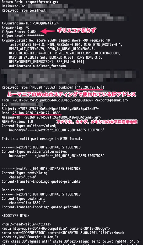 送信先として,漏洩系のメアドじゃなくて,infoとかsalesなどのメアドに送り込んで来ているのが特徴.