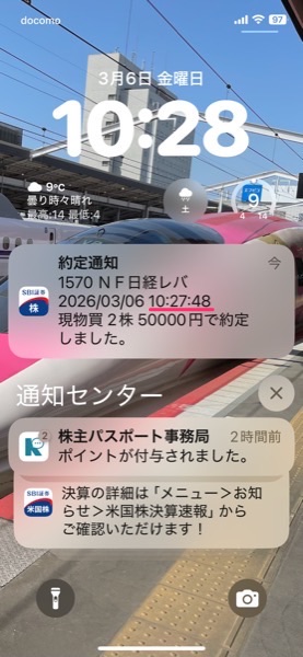 チャートを見ると,一瞬,ドンと下がったところで約定したようで,その後は一旦急落直前まで戻して前日の終値を上回る推移で終了.