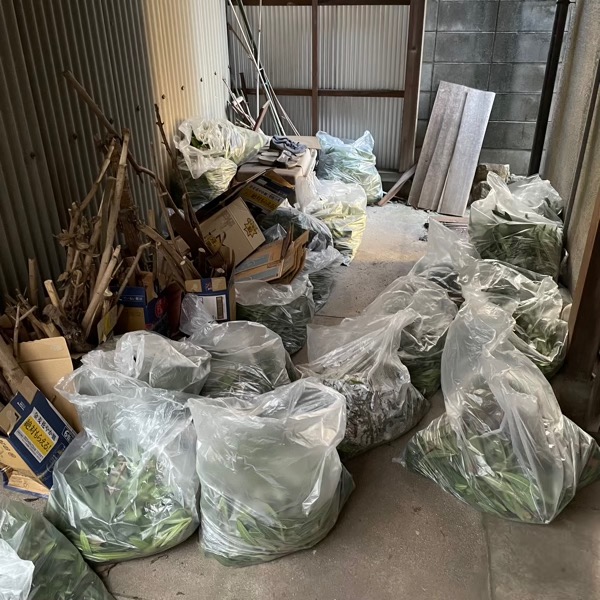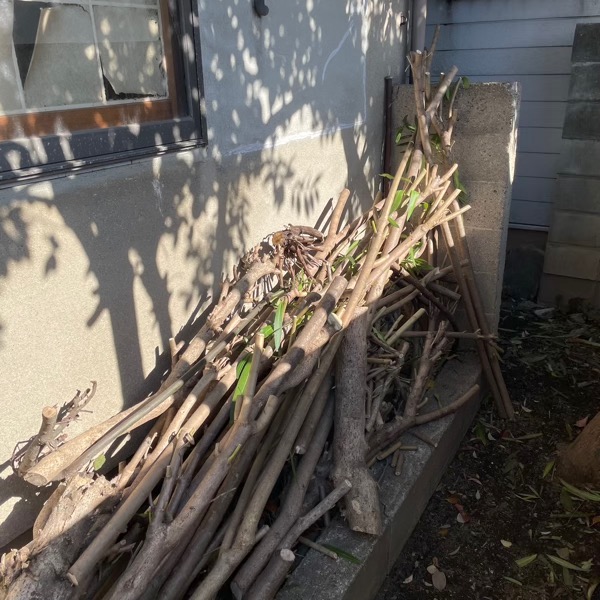 私の実家では剪定したものは燃やしたりしようと思っていたけど,今回は大量で移送も難しいので,ごみ収集日に捨てることに.
