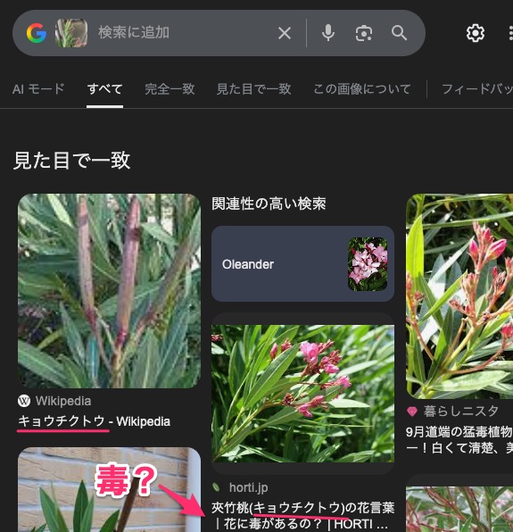 和名がキョウチクトウ,中国名が夾竹桃という木で庭や街路樹で使われるもののよう.しかし毒があるそう.