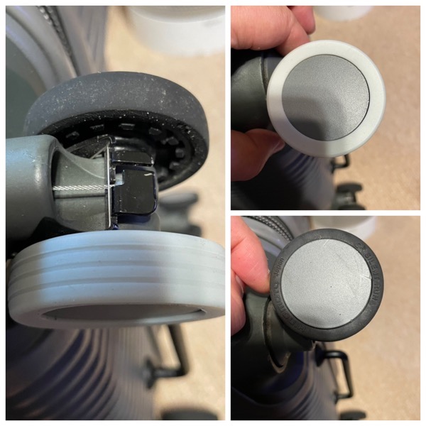 特に問題なく装着できたし,これをつけてもキャスターは回転できました.これでオリジナルのキャスターの延命ができるかな? とりあえずは,このカバーを途中で落としそうなので,交換用のキャスターカバーを持ち歩いた方が良さそう.