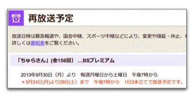 NHKの朝ドラの再放送を録画していた.本放送と同じで1日1回の放送なので半年間約156話.録画していたのは「ちゅらさん」.人気があったので何度か続編のスペシャルドラマが作られたのは知っている.