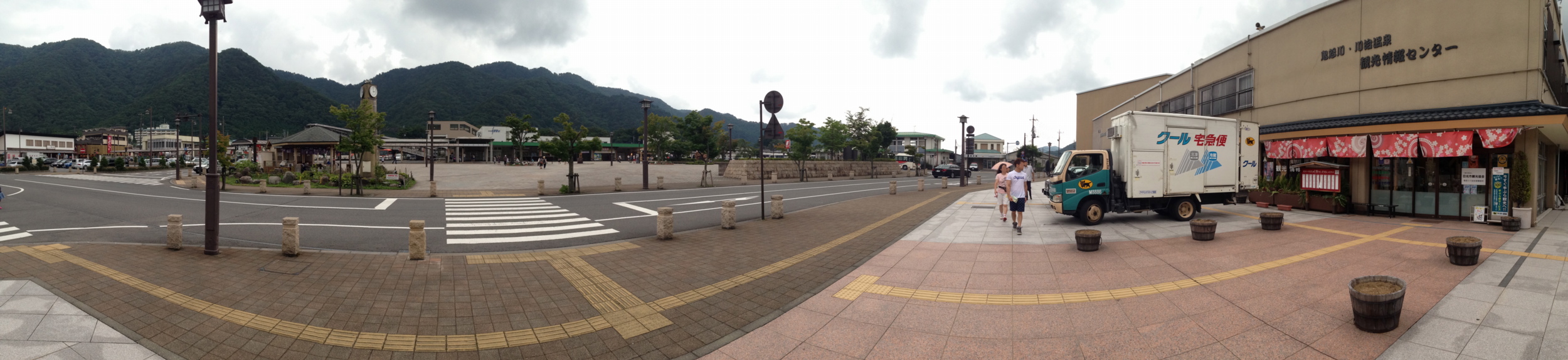 駅前の案内所の前でiPhone5でパノラマ写真を撮ってみた.