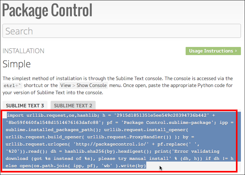 開いた上で,以下のPackage ControlのWebサイトを開く.