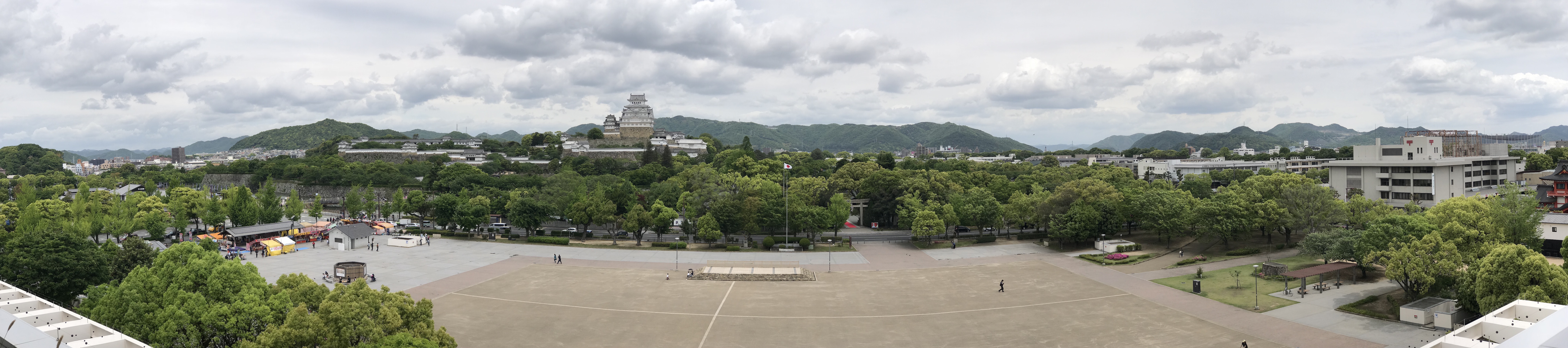 JR姫路駅を背にして姫路城を正面にみると,右側(東側)にある観光施設がイーグレひめじ.その屋上は展望台担っているので,そこからiPhone 7 Plusでパノラマ写真を撮ってみました.