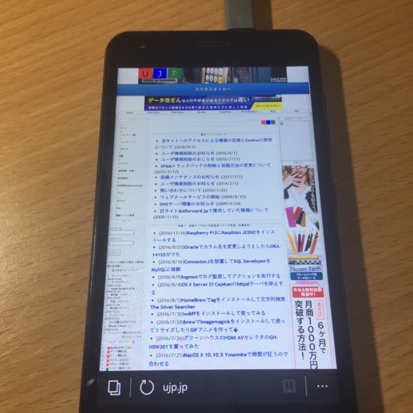 そしてMicrosoft Edgeを使って,当サイトを表示してみた.Flashの部品は出てないことを確認.広告は出ているし,十分かな.