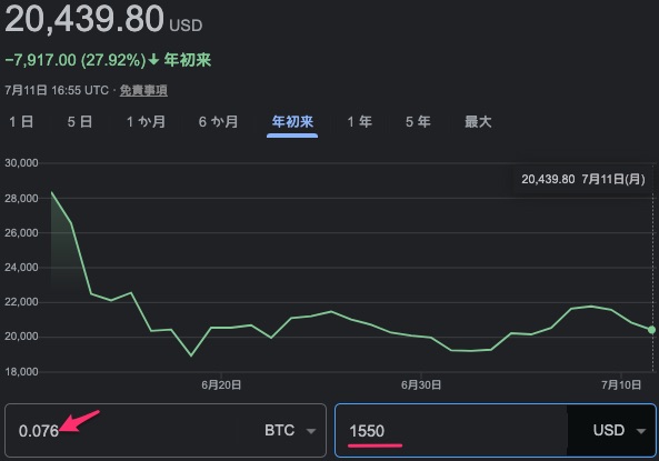 今日現在の22万円相当のビットコイン価格を調べてみた.