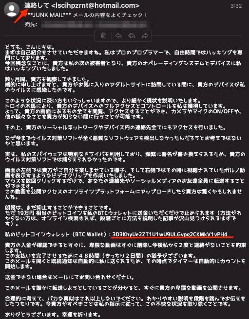 ブログ - メールの内容をよくチェック! / メールの内容に注意! というビットコインを要求するメール