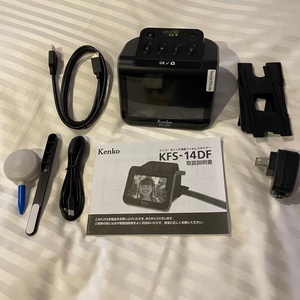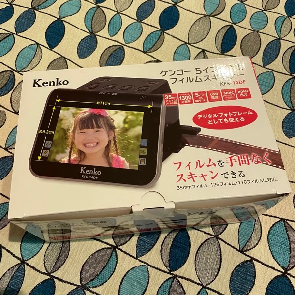ということで,スライド投影機の準備とかとても大変なのと,叔父の指のリハビリの為に,コツコツとフィルムをデジタル化する為に買ったのが,このKenko Tokinaの5インチ液晶フィルムスキャナー KFS-14DFです.値段は23,000円くらい.