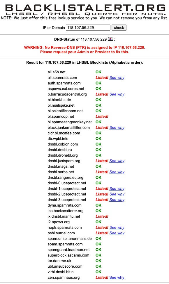 送信IPアドレスがSpamAssasinでブラックリスト登録されているけど,スコアが届いてない感じ.