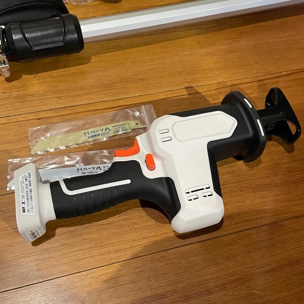 そしてバッテリが共有できるので,草刈機と同じKOSHINの電動ノコギリに.