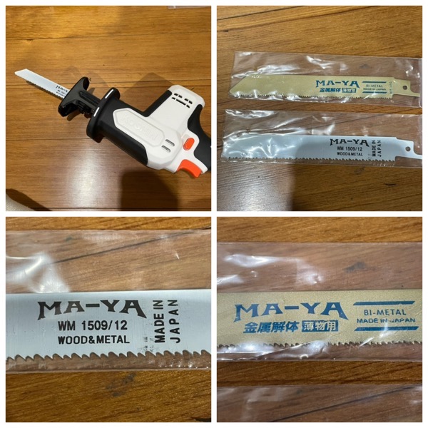 レシプロソートいう汎用のノコギリ刃に対応していたのも決め手だけど,付属していたのは金属切断用と木材切断用でした.