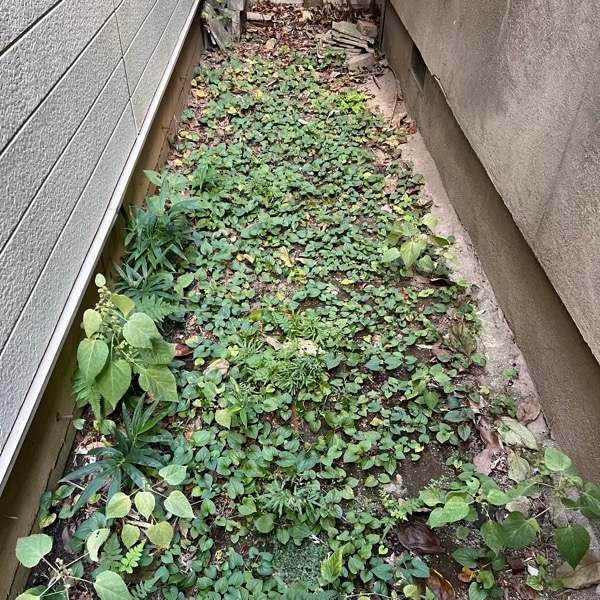 3ヶ月前に靴に剣山をつけて踏みつけ光合成をさせずに除草するという手段を実行してみたのだけど,その効果.