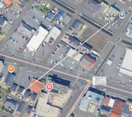 その場所は,私の記憶だと田んぼがあった場所.それは数十年前だけど,その場所で気になったのが,近くにある郵便局,これが昔,拳銃を持った覆面の男による強盗事件があったのだけど,今,Google Mapで距離を測ったら直線距離で100m.点と点を線で結んで・・・