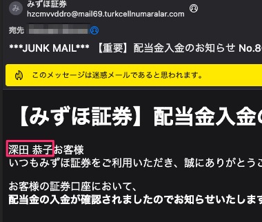 ここ数日,うちに到着している金融系を騙るフィッシングメール.本文にある宛名の中に有名・著名人の名前が差し込みで入っている.