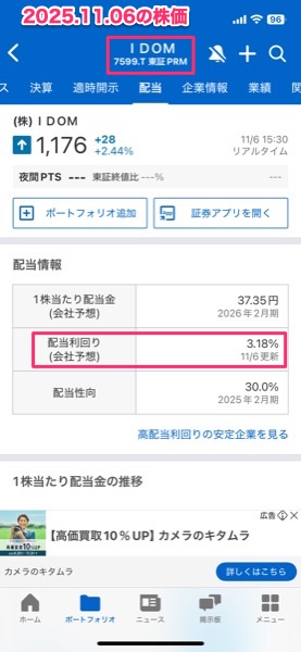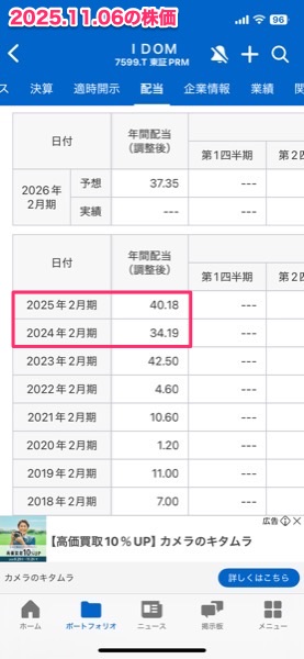 2年前の新NISA前でSBI証券が手数料無料になる直前にガリバーを運営するIDOMの株を買ったのだけど,高配当なので考えてみた.