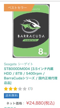 とにかくデータが増える趣味を持っているので,定期的にストレージが必要になるので,秋葉原に行く都度,8TBの価格はチェックしてる.(この価格はSeagateだけどね)