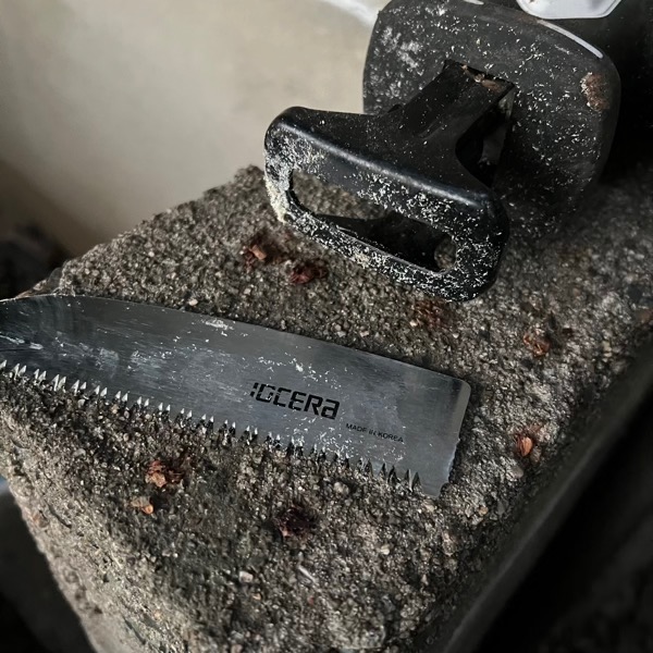 KOSHINのレシプロソーを使って気を切っていたけど,切れ味が悪くなったので京セラインダストリアル・ツールズの「レシプロソー刃(木工・樹脂用) No.68 剪定用」に交換.その後,たくさんの木を切っていたのだけど,切れ味が悪くなったなぁと思っていたら,折れた.