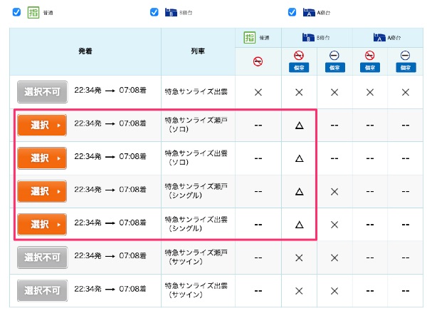 JR西日本のインターネット予約システムのe5489を初めて使ってサンライズエクスプレスのサンライズ出雲のチケットが取れた.