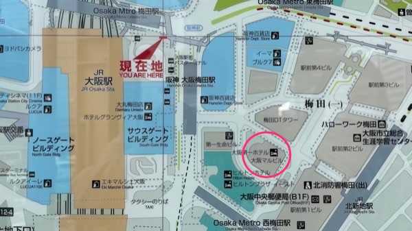 場所は大阪駅の南口方面を出で徒歩3分程度.
