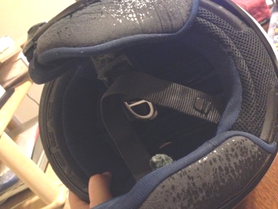 あごヒモの部分もボロボロ.みすぼらしい.