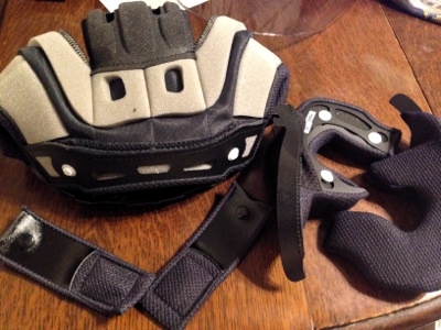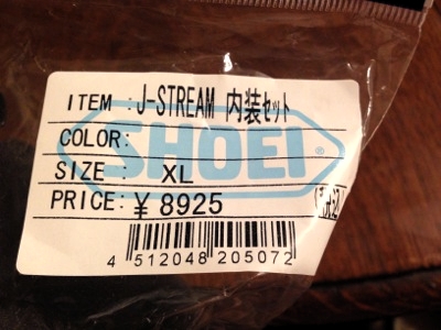 このJ-ForceIIは内装を取り出せて洗えるのが特徴だったのだけれど,洗えるくらいだから内装部分を売っているのでは?と思いバイク用品屋のナップスに行ってみた.すると,そもそもJ-ForceIIはモデルチェンジしていてJ-ForceIIIになっていて,部品も無かった.しかしJ-STREAMというモデルの内装が互換性があると言うので,それを取り寄せてもらいました.
