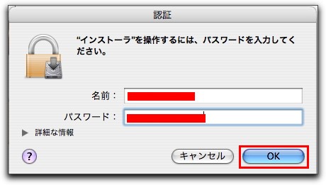 - この作業では,内部的にStartUpItemフォルダにモジュールを設置したり,/etc/hostconfigファイルに記述を加える等の作業を自動的に行ってくれる.