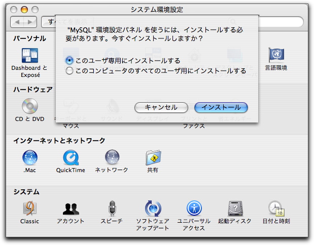 MySQL4.1をMacOS X 10.4にインストール