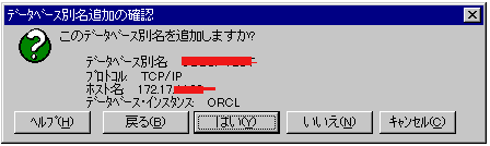 - また,ここで定義した"データベース別名"は,たとえばSQL Plusで接続する際の"ホスト文字列"となる.