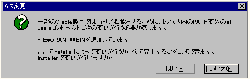 - SQL Plusなど?の,コマンドラインユーティリティを実行するための検索パスを自動的に設定するか否かを答える.
