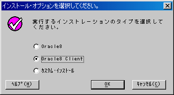 - ここではクライアントソフトをインストールするため,[Oracle8 Client]を選択して[OK]ボタンを押す.
