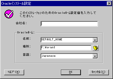 - Oracleホームの設定を行う. 今回はFドライブに導入する以外はデフォルトのままである.