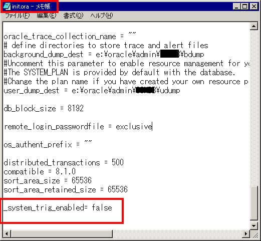 - パッチを当てる時にトリガが動かないようにするため?,init.oraファイルを編集してシステムトリガーを無効にする.