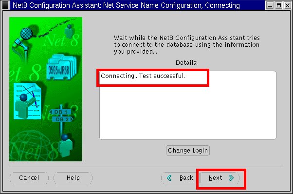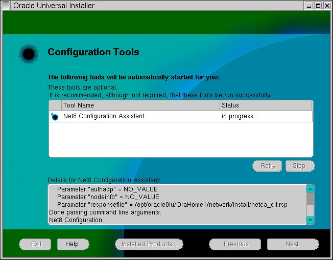 - 「Oracle8i 8.1.7 Client Install for RedHat6.2 〜アプリケーションユーザ〜」の手順では,Net8 Configuration Assistantの手順はキャンセルしたが,今回はこれを使って接続設定まで行ってみる.