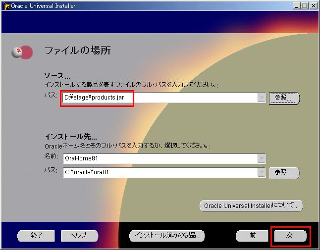 - Explorerから,C:\oratemp\install\win32\setup.exeを実行する.