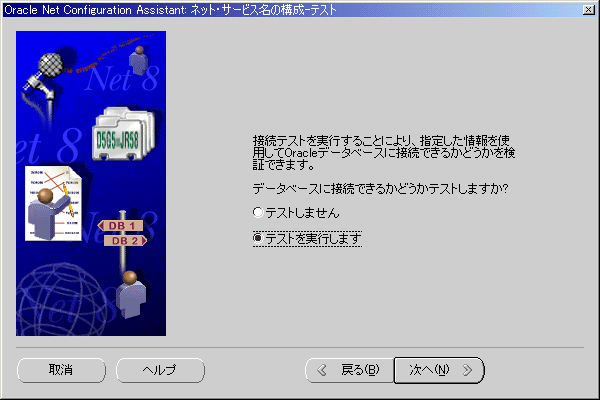 - このときのテストは,scott/tigerユーザで接続を行うので,このユーザを作成していないデータベースサーバの場合は,別のログインID(sysとかsystemでも可能)を使う.