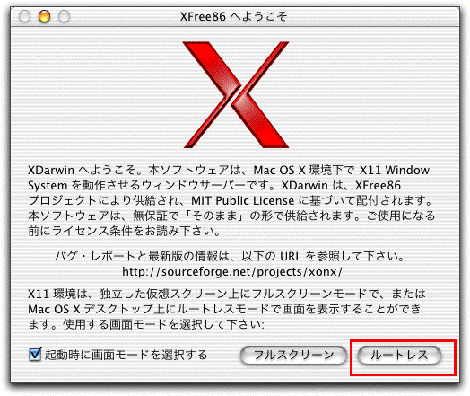 このドキュメントでは, MacOS X用のX-WindowシステムであるXDarwin(XFree86)を使ってみる.